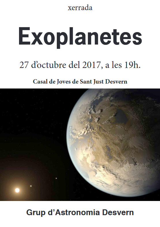 El proper divendres 1 de desembre de 2017 a les 19h, al Casal de Joves de Sant Just Desvern, farem una xerrada i una exposició dels 30 anys d'astronomia a Sant Just Desvern.